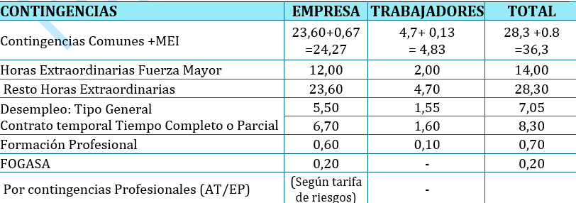 Resulta de aplicar a las Bases de Cotización, unos porcentajes establecidos por la normativa para las diferentes contingencias que protege la Seguridad Social. Vamos a ello: